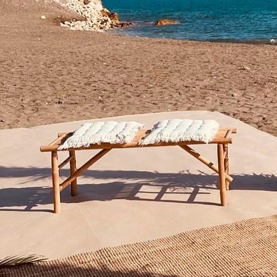 Banco de bambú con cojines